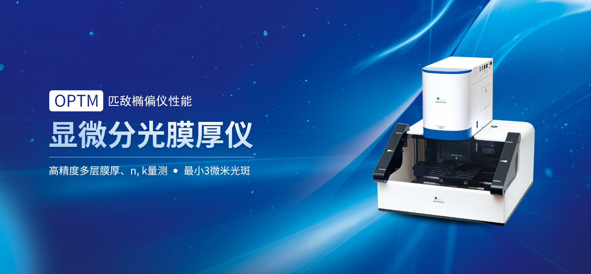 ● 非接觸 · 非破壞 · 顯微、對焦、測量1秒完成 ● OPTM系列顯微分光膜厚儀是一款可替代橢偏儀,測試膜厚、折射率n、消光系數k、絕對反射率的新型高精度、高性價比的分光膜厚儀。
