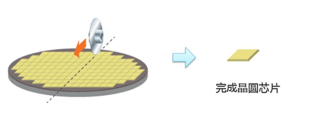 將前工藝中制作的晶圓在后工藝中一個一個切開分離IC芯片,封裝。把芯片切小這個工藝叫做切片。主要通過高速旋轉鉆石材質的圓形刀片,用純水一邊冷卻一邊沖洗切割中的碎渣完成切片的。