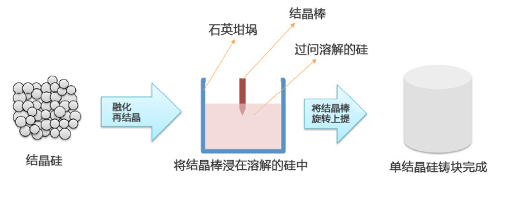 第一個工藝是鑄塊。鑄塊是制作晶圓的基板。將結晶硅和硼酸(B),磷(P)一起放入石英坩堝中,高溫溶解。將結晶棒浸入溶解的硅液面,一邊旋轉,一邊慢慢的向上提起,單結晶鑄塊完成,并且其原子配列和結晶棒相同。